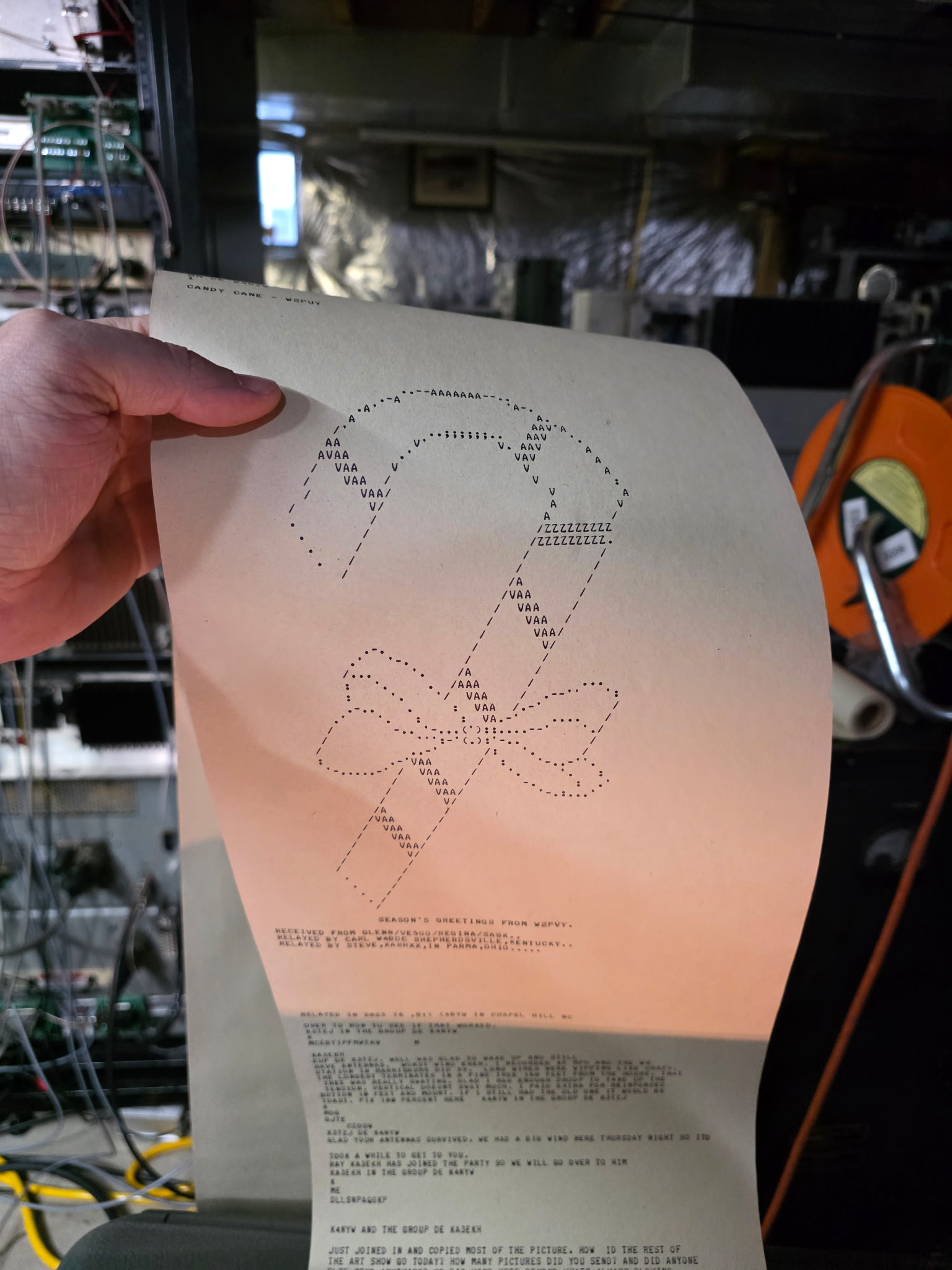 On our weekly 40m 850 shift RATT net I sent the guys a few artwork paper tapes Participants KA4RSZ (GA), WB2JWU (NH), W8ZJT (OH), K3TZJ (PA), KA3EKH (MD), and Net Control K4NYW (NC)