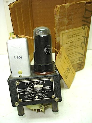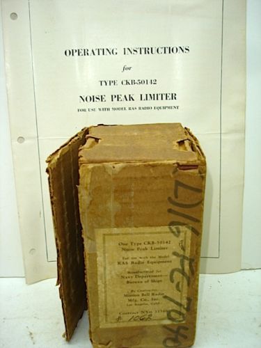the correct figure for the CKB-50142] The Navy Department first issued a development contract to produce 10 of these units. I don't recall just where they were sent. I know of one unit that was sent into the Alaskan area, where they were troubled with very heavy static, another went into Honolulu, which was another noisy area, I believe one went into Florida; the rest of the 10 I am not sure where they went, but anyway they were shipped into areas where noise was a factor, and the field tests showed that the instrument was very effective. I think later that ended up in a production order for a redesigned unit. However, it does not come into the period with which we are concerned. On this noise peak limiter we also developed, as I recall, three different types. One was made as an accessory for the Navy—I believe it was the RAS receiver. Another one was made for the SX-28 receiver. Still another one was made for the ARB. The purpose of all of them was the same, just a matter of adapting them to receivers. Now, that was an accessory that could be sent out into the field where they had noise and they had a certain type of receiver. This adapter could be plugged into the receiver, and it was very effective in reducing noise, which means that communication was made possible in some cases where it would not have been otherwise." |