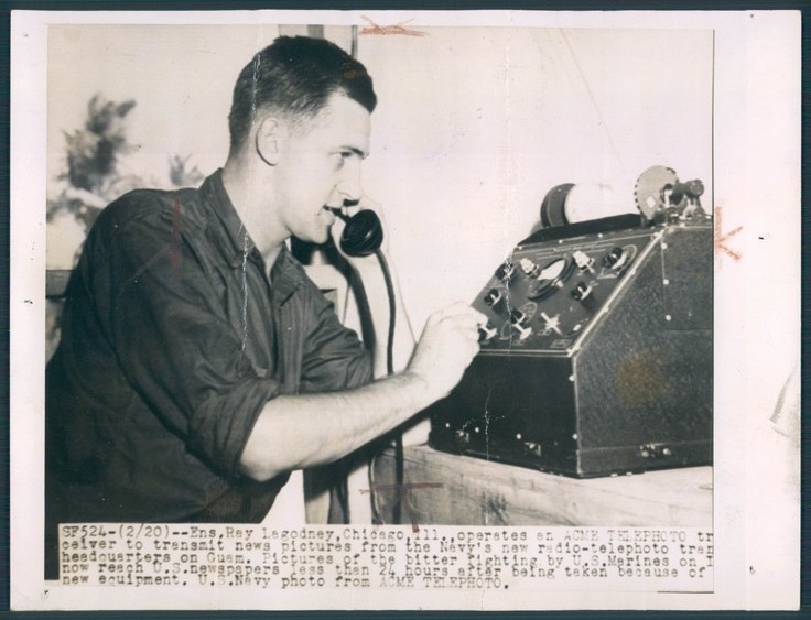 The first widespread recognition of Navy radiophoto facilities by the major news services of the United States occurred in February 1945, during the Iwo Jima campaign It was at this time that the pictures of the initial landing operations and the famous Suribachi flag-raising scene of Iwo Jima, were sent by plane to Guam, then transmitted by radiophoto to San Francisco in time to be released jointly with the first news stories of the Iwo Jima operations. Much editorial comment of a complimentary nature was given to the activity at this time, particularly since the flag-raising picture has subsequently been generally conceded to be the outstanding picture of World War II.