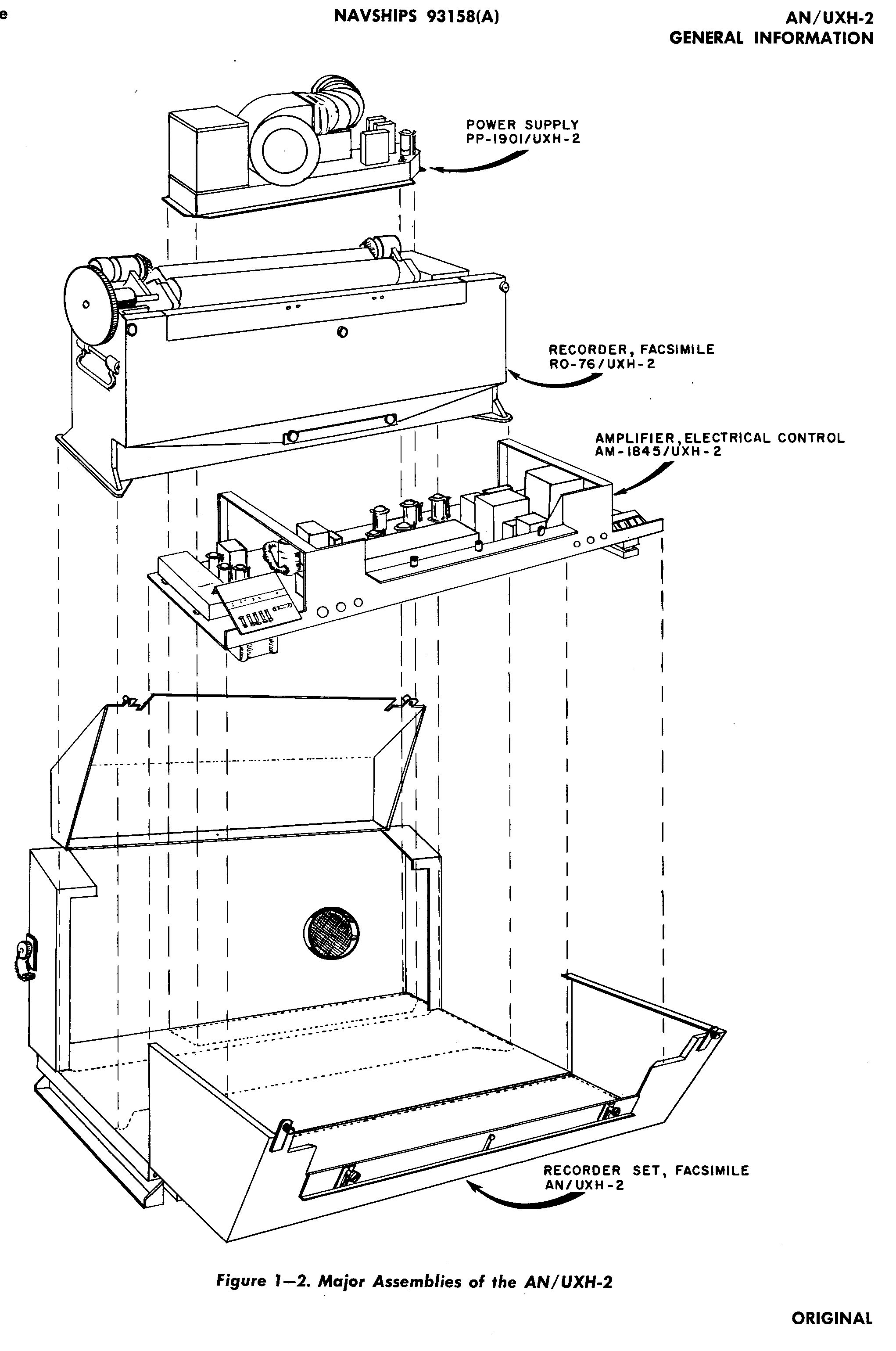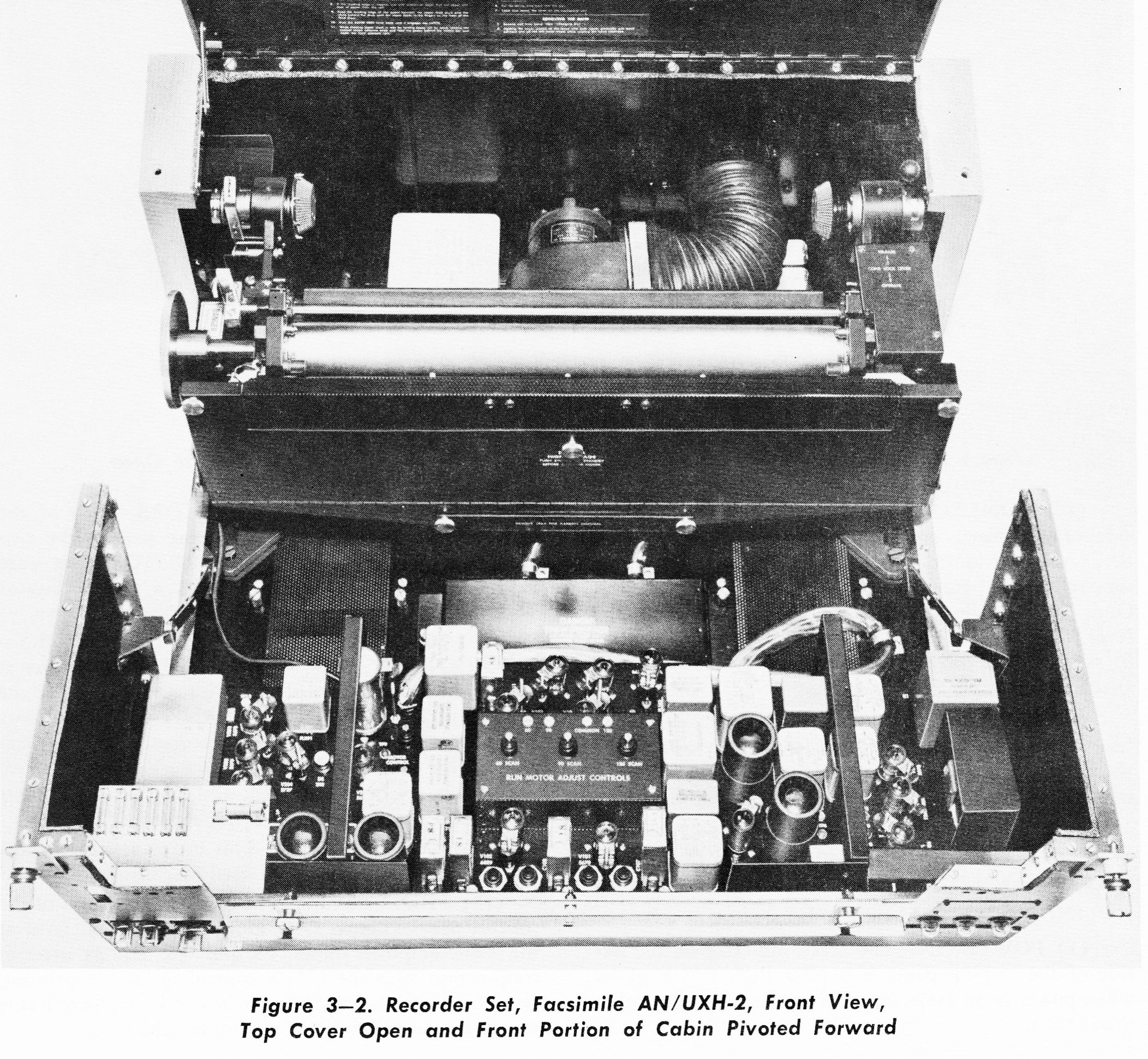 AN/UXH-2fax recorder (continuous paper feed type) 60, 90, 120 scans/min BuShips Journal Article - Facsimile Recorder AN/UXH-2 |