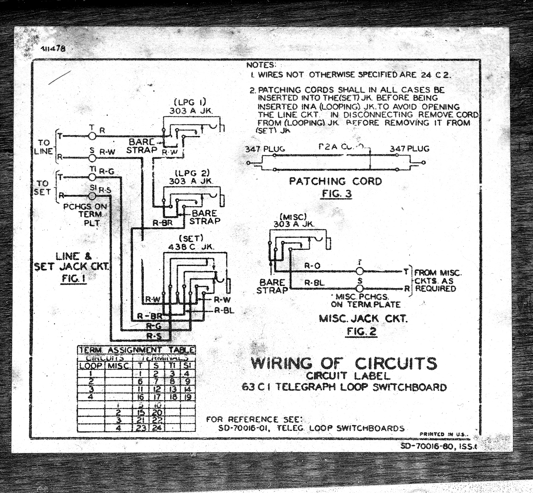 "NOTE: Anyone patching or unpatching circuits from a TTY panel must be sure to pull the plug from the looping jack (LPG) before removing the other plug from the SET (machine) jack. Pulling the SET jack first interrupts all TTY message traffic on that channel. IT ALSO PRODUCES A DANGEROUS DC VOLTAGE ON THE EXPOSED PLUG!"