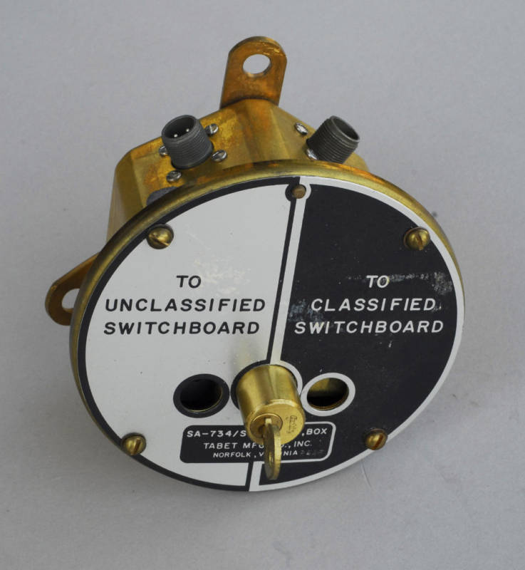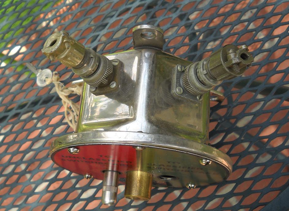 RED teletype signal patch panels are used on the plain text side of encryption equipment and BLACK/GRAY patch panels on the encrypted side. If a piece of teletype equipment can switched between the two, a locking switch and indicator lamp are used to avoid mistakes.