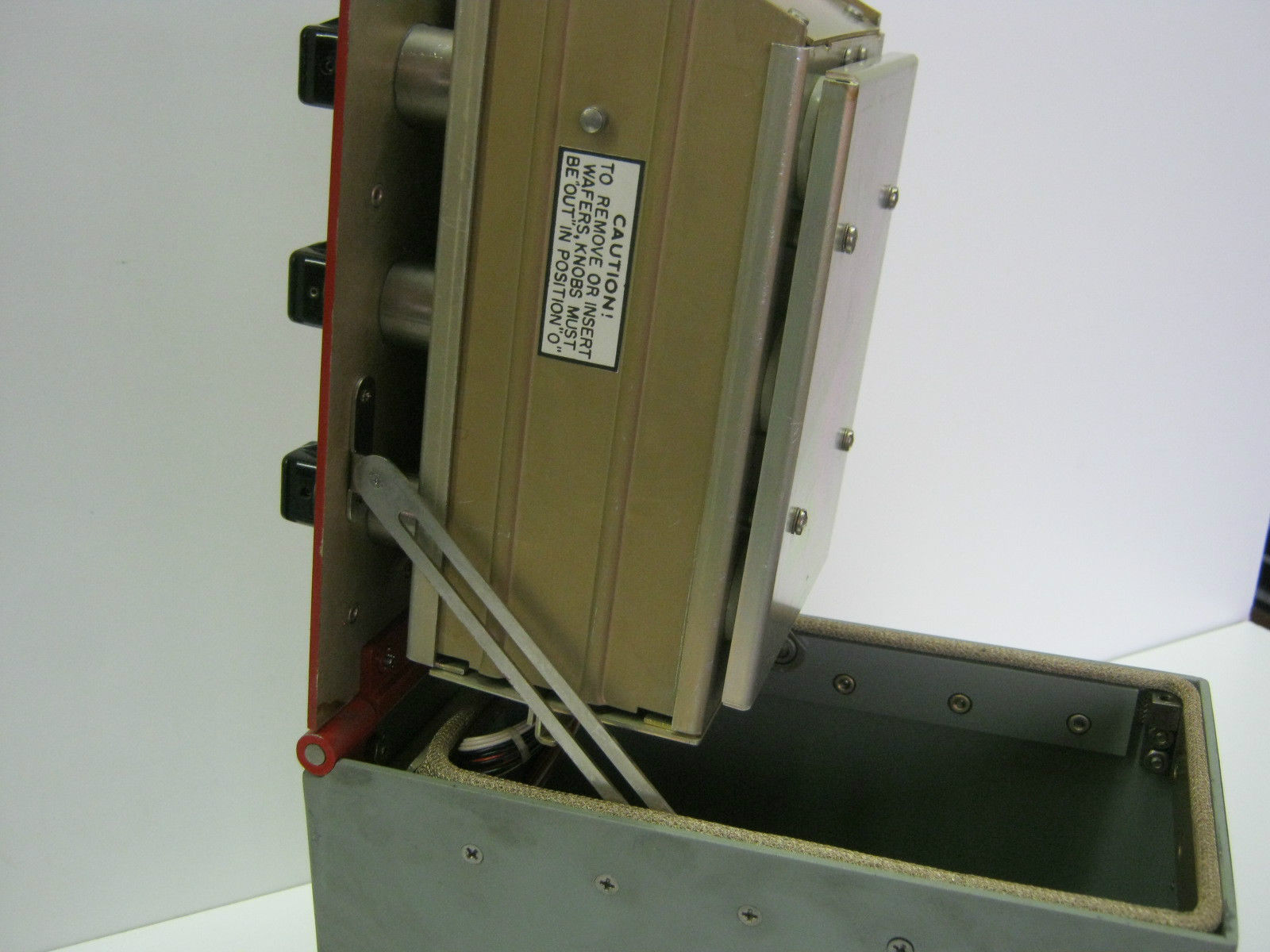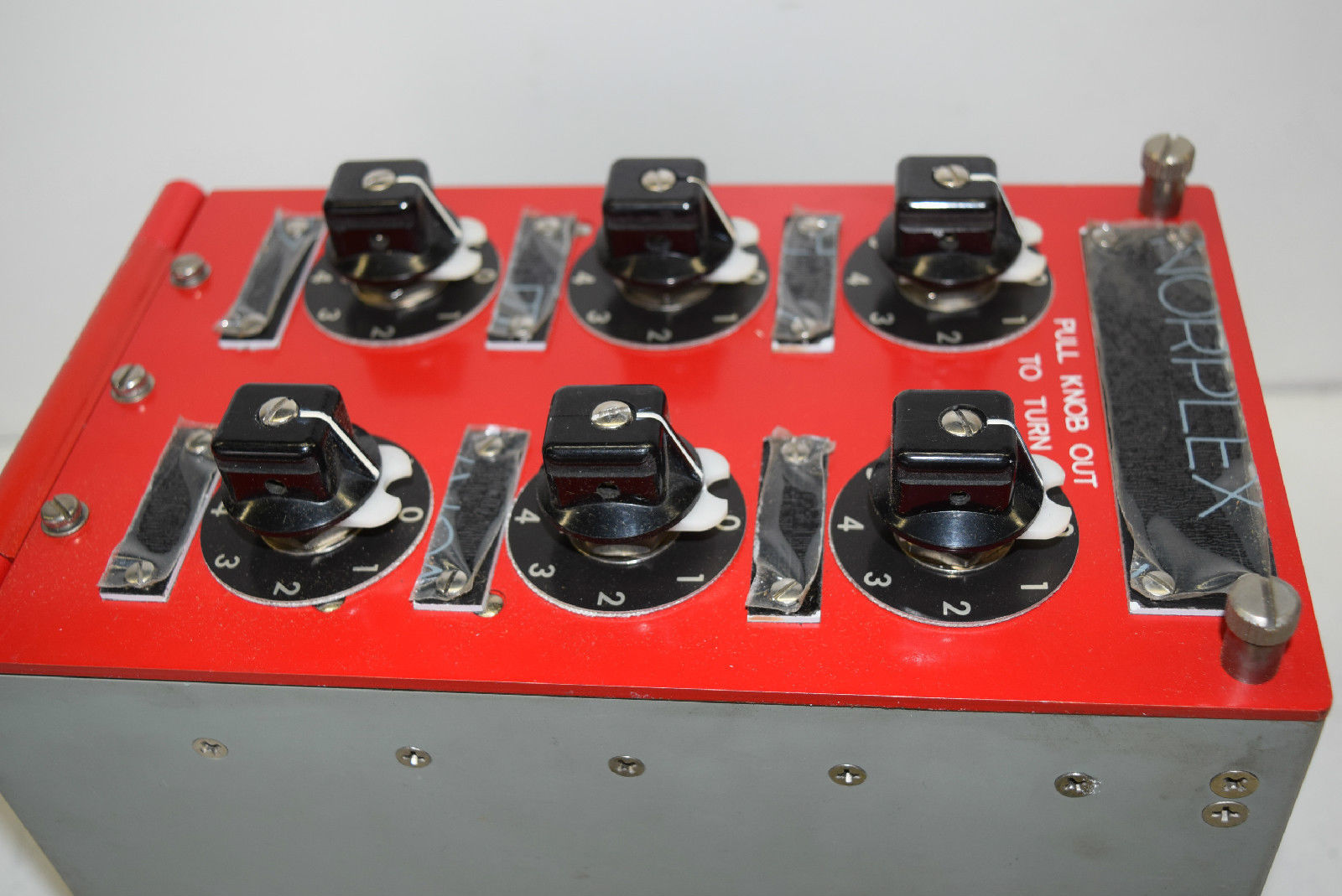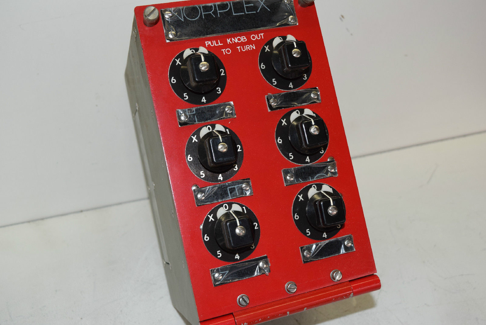 SA-1794/UG Teletypewriter Switching Unit Incorporates 6 push-pull rotary switches with instantly removable wafers, low level gold plated contacts, wafers and receptacles, extension capabilities for system expansion, a completely shielded enclosure and minimum size; each unit contains six eight-position switches, mounted in two vertical rows; the positions are six active transfer positions, one extension position and an OFF position; switch position indicating device indicates both the rotary position and the IN position of the knob; when a switching matrix of more than six is desired, additional input or output (or both) devices can be added by using the extension position of the basic switch; systems of any size can be assembled with the multiple use of one basic module. | |