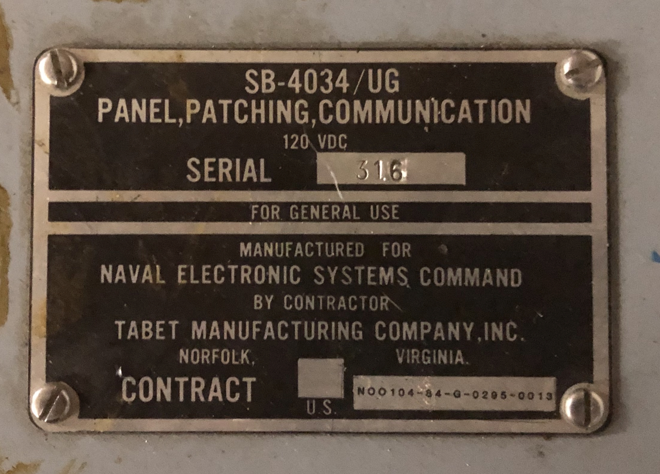 SB-3189B aboard USS Iowa Secure (Red) TTY Patch Panel |